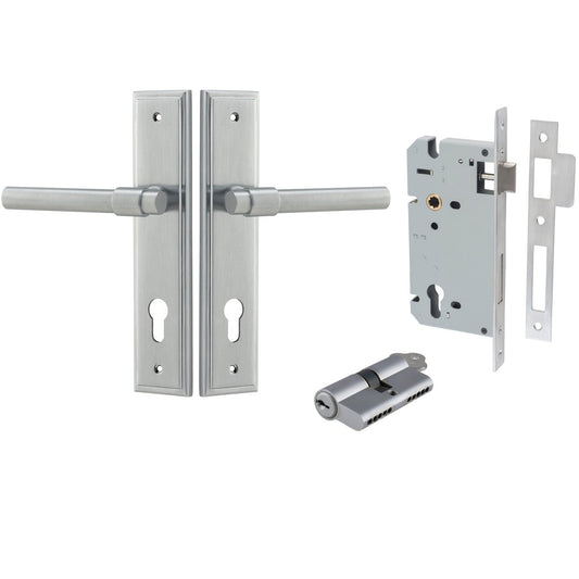 Iver Door Handle Helsinki Stepped Euro Pair Key/Thumb Brushed Chrome Entrance Kit
