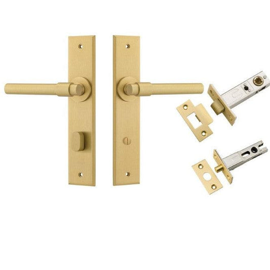 Iver Door Handle Helsinki Chamfered Privacy Pair Brushed Gold PVD Privacy Kit