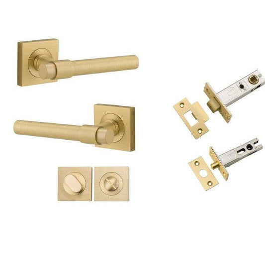 Iver Door Handle Helsinki Square Rose Inbuilt Privacy Pair Kit Brushed Gold PVD