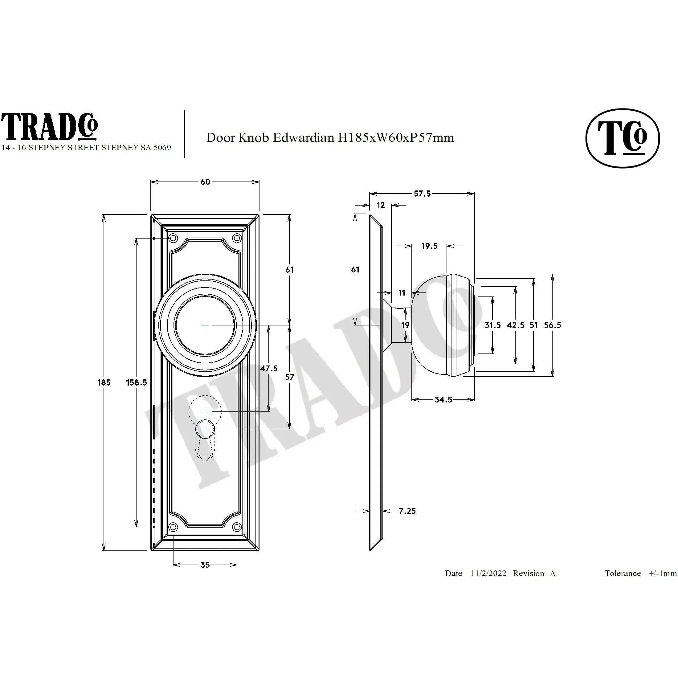 Tradco Door Knob Edwardian Euro Pair Polished Brass