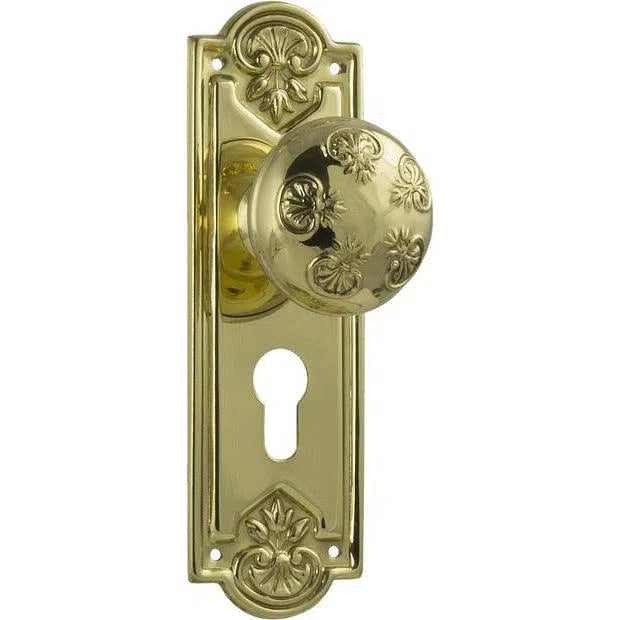 Tradco Door Knob Nouveau Euro Pair Polished Brass