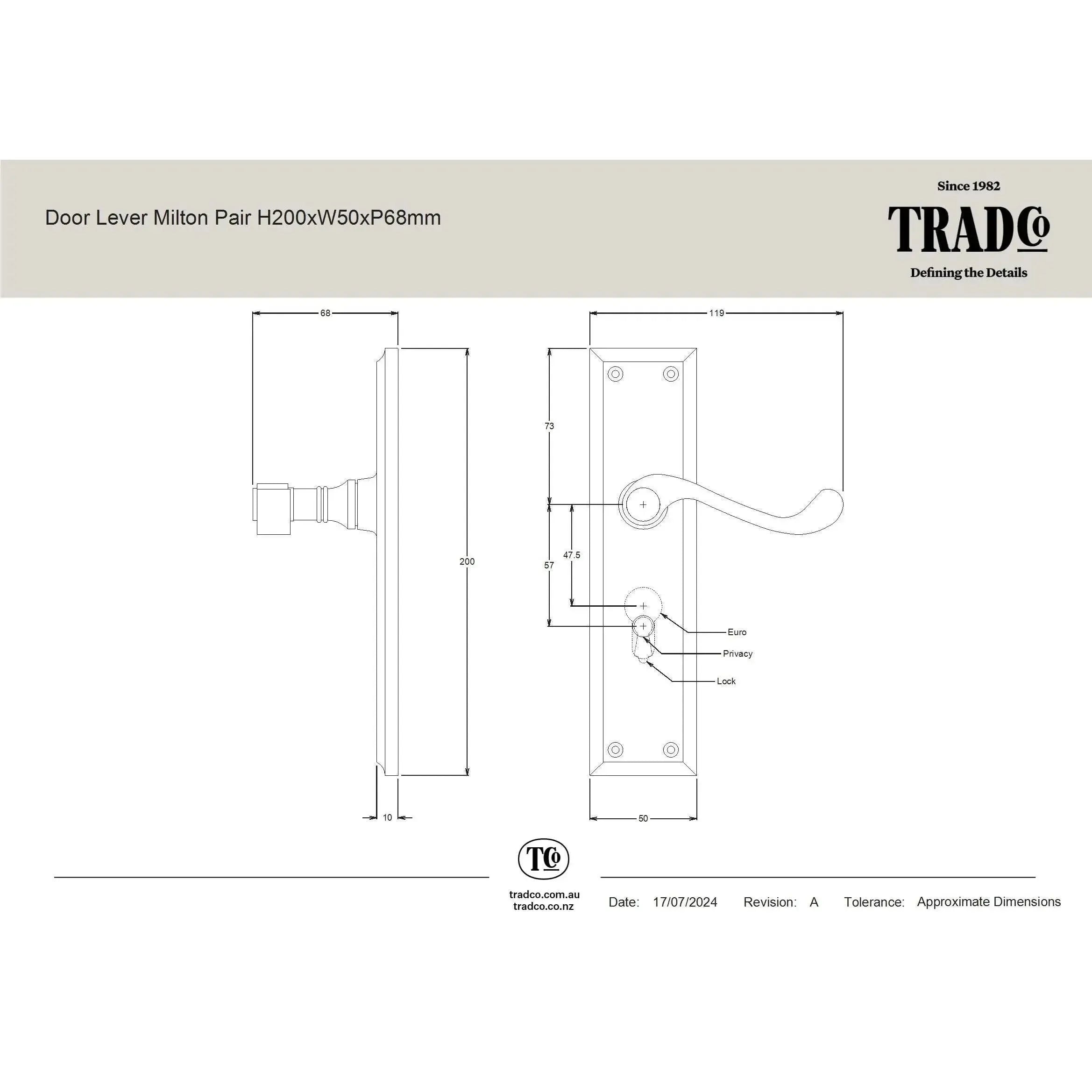 Milton lever on long backplate. Made from solid brass.