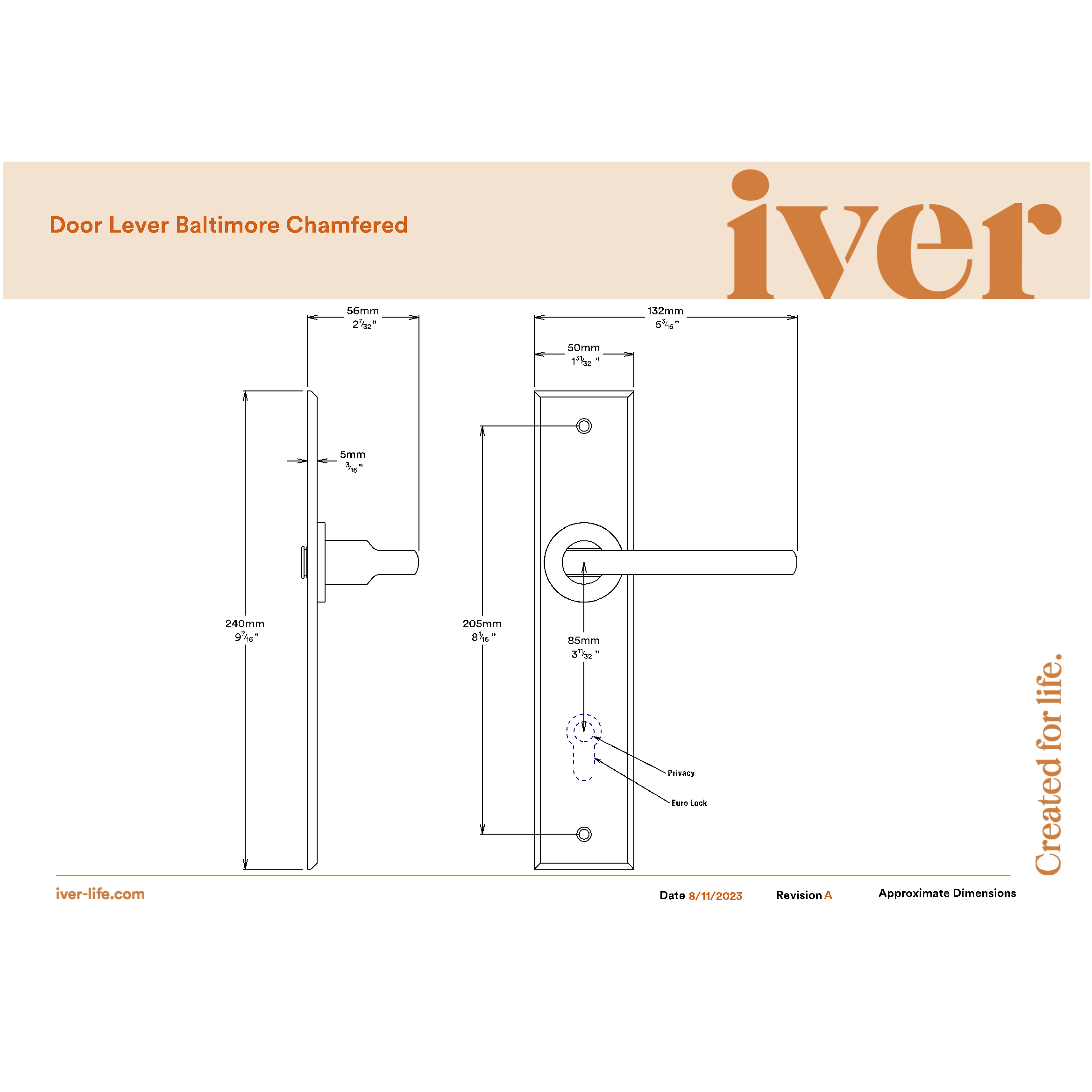 The Baltimore lever is a versatile option, boasting a slimline design that effortlessly integrates into the style of any project without overshadowing or detracting from the overall aesthetic. The Baltimore lever can be purchased as a passage, privacy, or entrance kit, which includes all components required for your door to function.