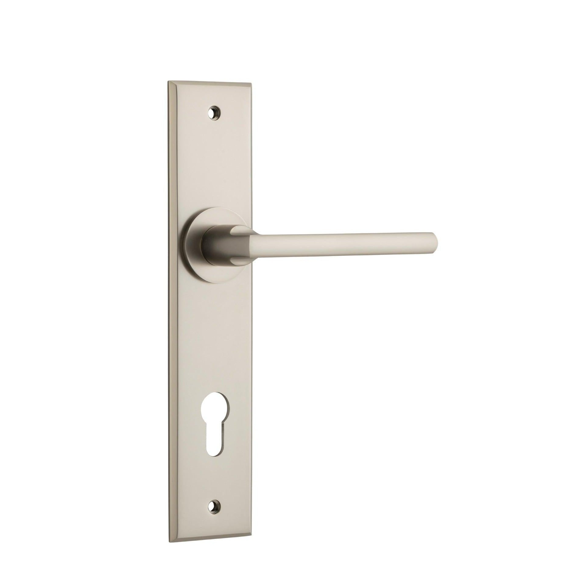 Iver Door Handle Baltimore Chamfered Euro Satin Nickel