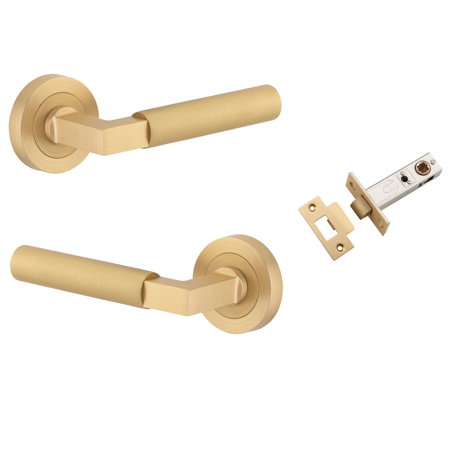 Iver Door Handle Berlin Rose Round Brushed Brass Passage Kit