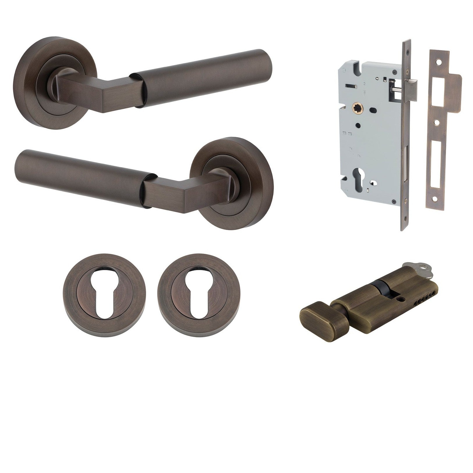 Iver Door Handle Berlin Rose Round Pair Key/Thumb Signature Brass Entrance Kit
