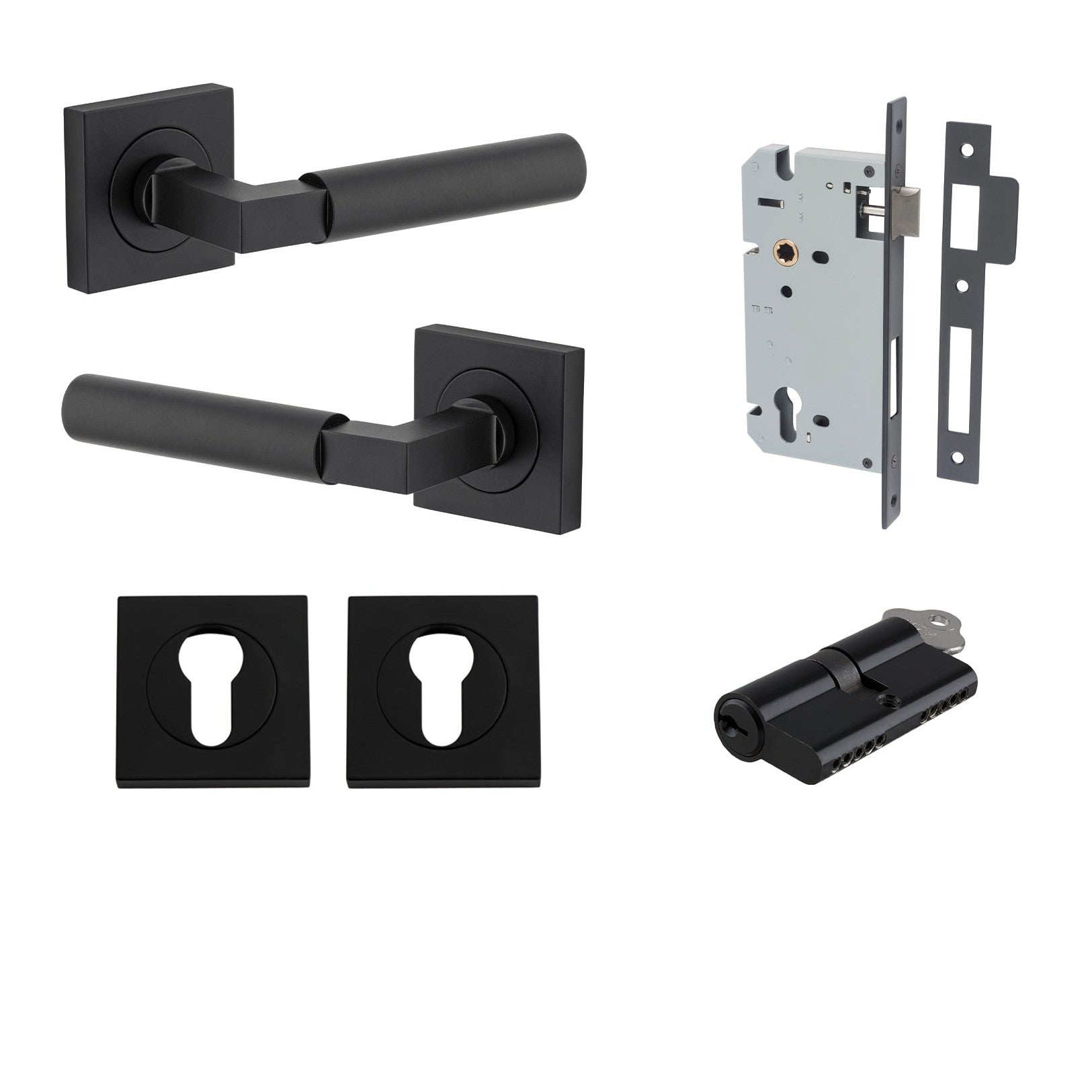 The Berlin lever can be purchased as a passage, privacy or entrance kit which includes all components required for your door to function.