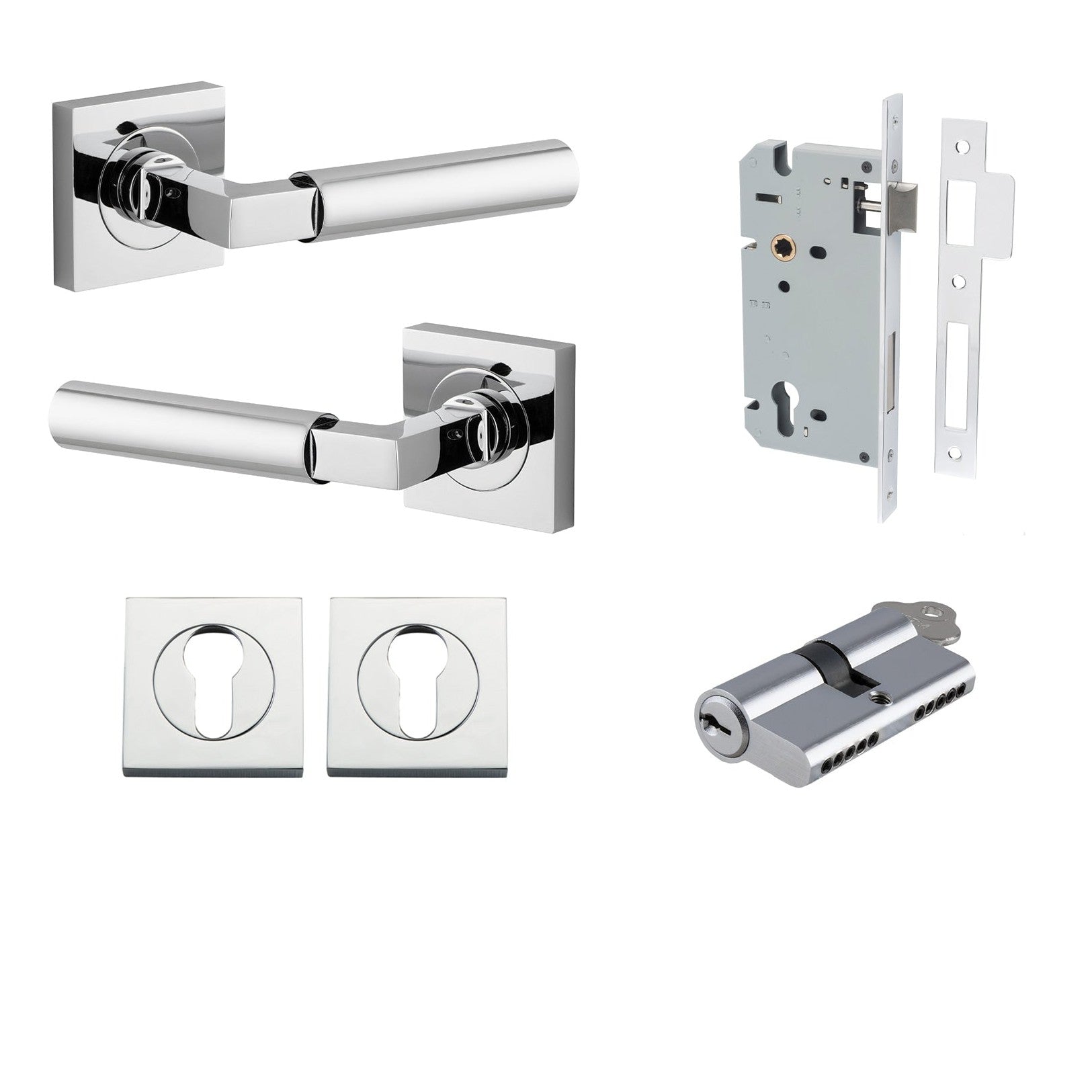 Iver Door Handle Berlin Rose Square Pair Key/Key Polished Chrome Entrance Kit