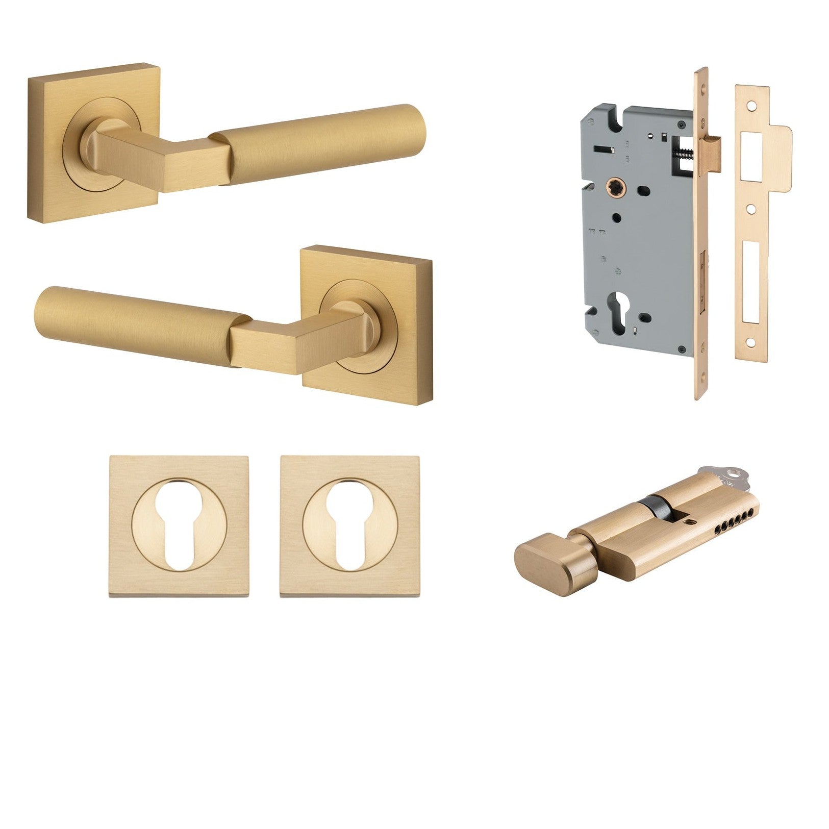 Iver Door Handle Berlin Rose Square Pair Key/Thumb Brushed Brass Entrance Kit