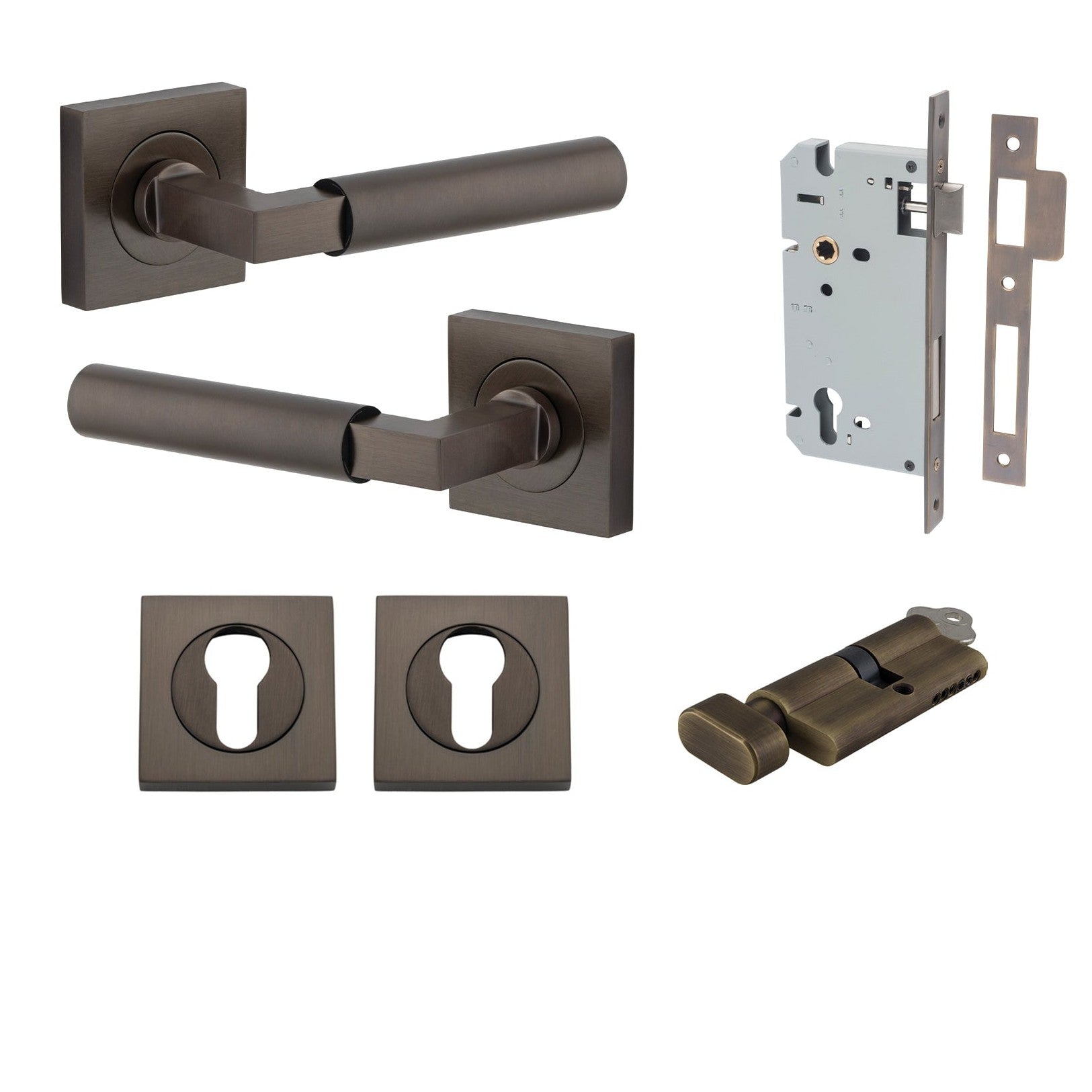 Iver Door Handle Berlin Rose Square Pair Key/Thumb Signature Brass Entrance Kit