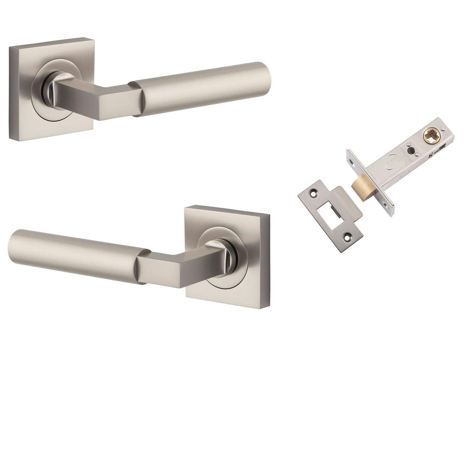 Iver Door Handle Berlin Rose Square Satin Nickel Passage Kit