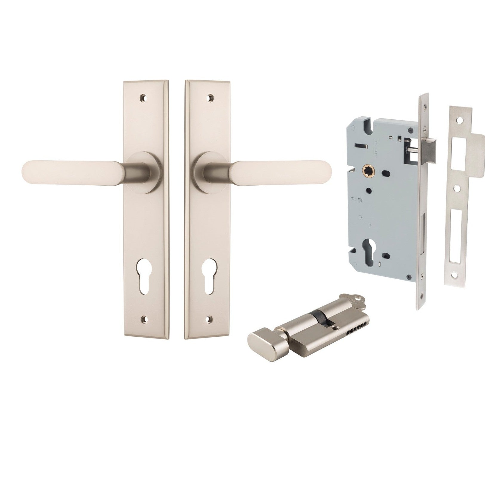 Iver Door Handle Bronte Chamfered Key/Thumb Satin Nickel Entrance Kit