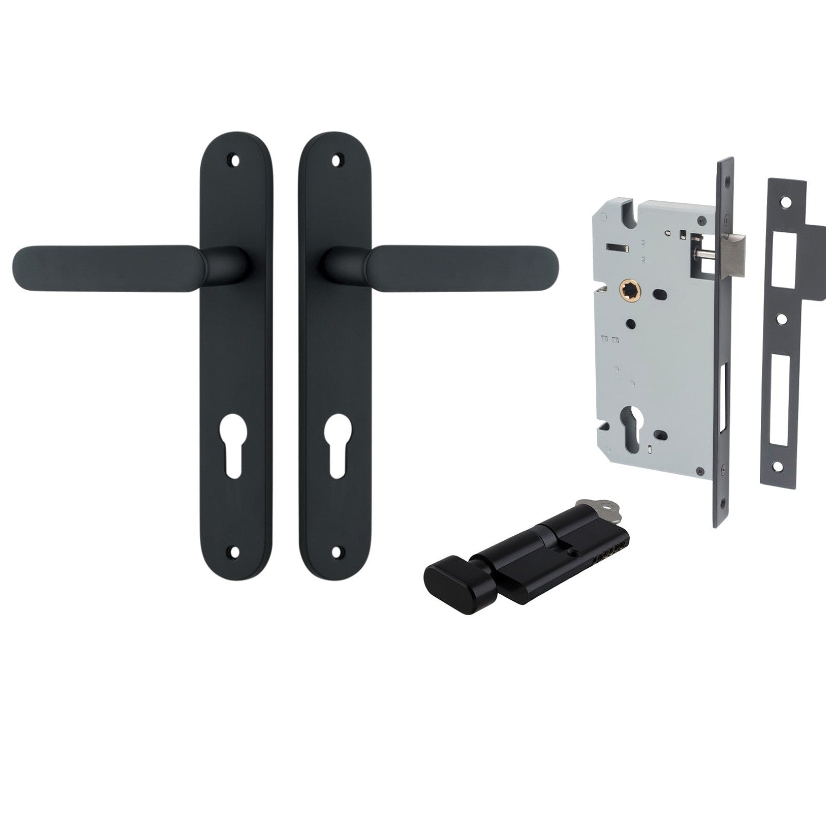 Iver Door Handle Bronte Oval Euro Pair Key/Thumb Matt Black Entrance Kit