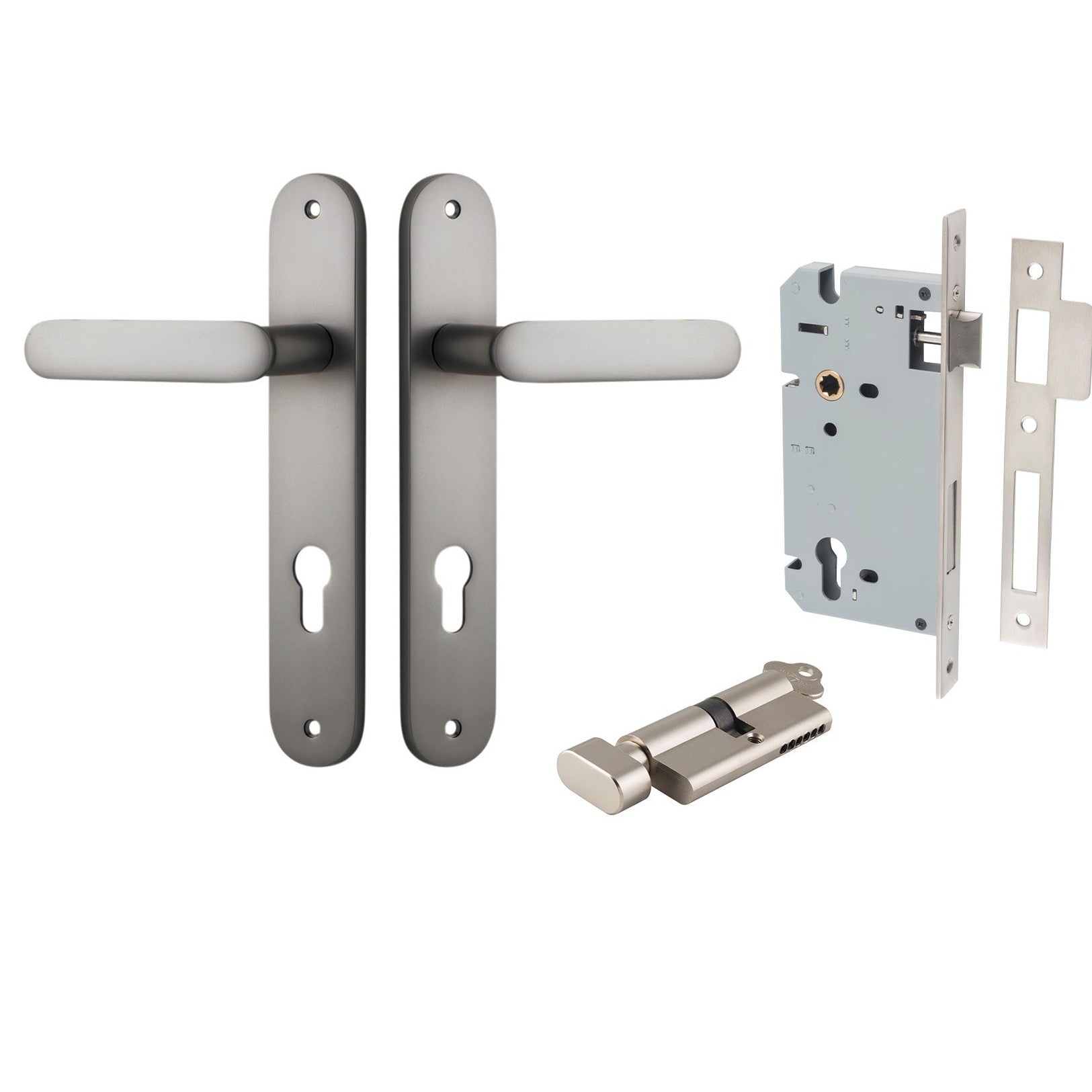 This product includes all components required to install on your door. Euro and privacy punch outs are 85mm CTC. Half sets are not available in Iver kits.