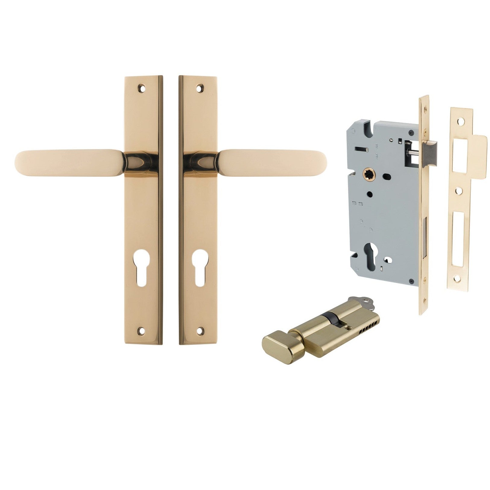 Iver Door Handle Bronte Rectangular Euro Pair Key/Thumb Polished Brass Entrance Kit