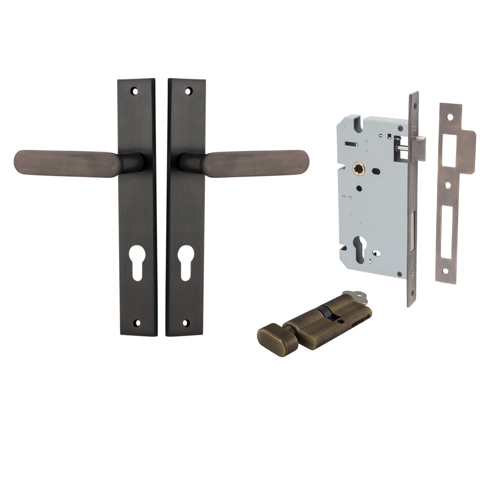 Iver Door Handle Bronte Rectangular Euro Pair Key/Thumb Signature Brass Entrance Kit