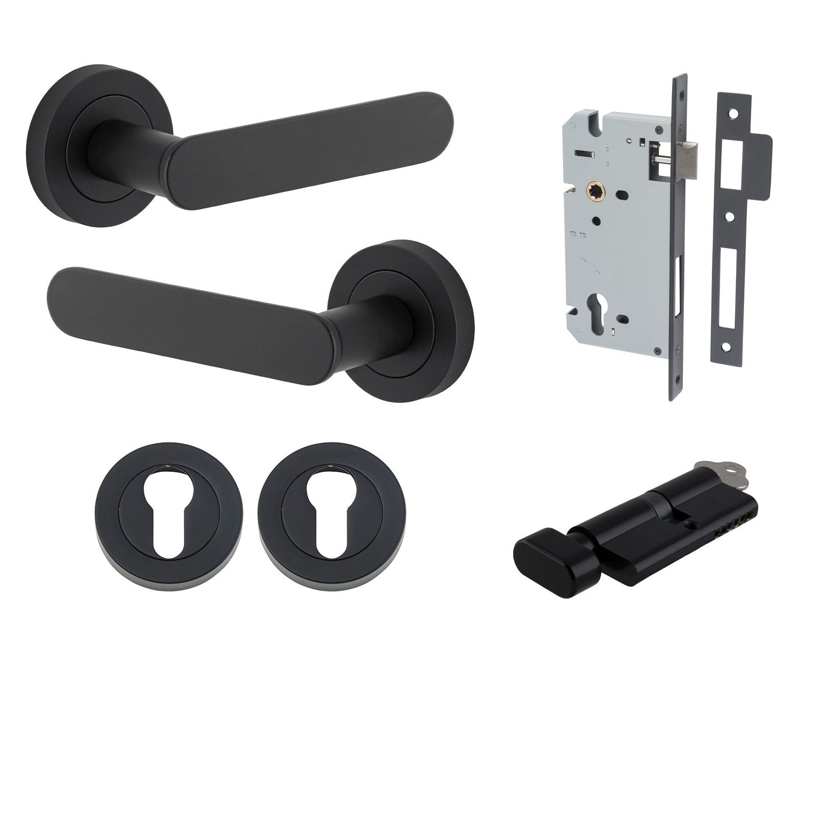 This product includes all components required to install on your door. Euro and privacy punch outs are 85mm CTC. Half sets are not available in Iver kits.