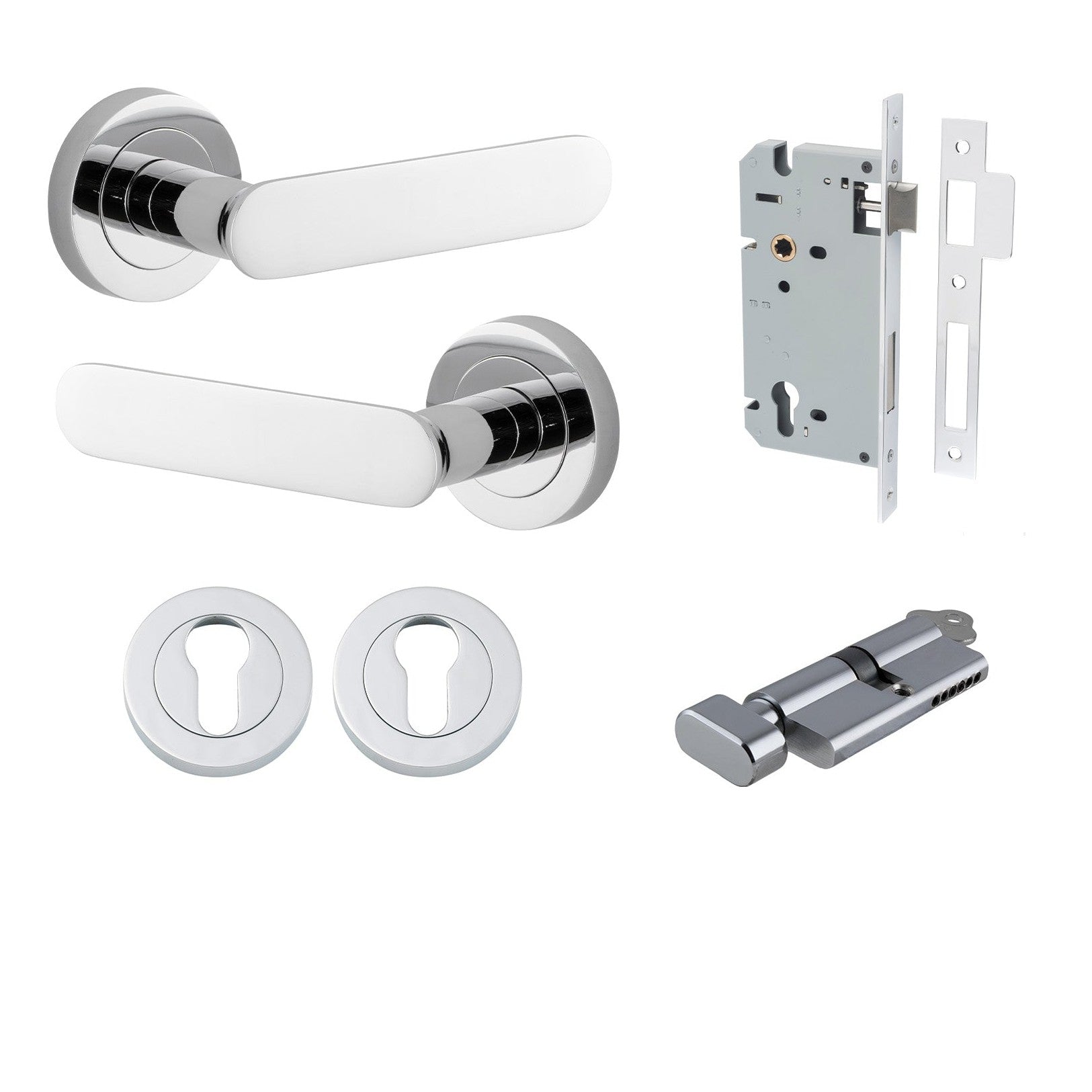 Iver Door Handle Bronte Rose Round Pair Key/Thumb Polished Chrome Entrance Kit