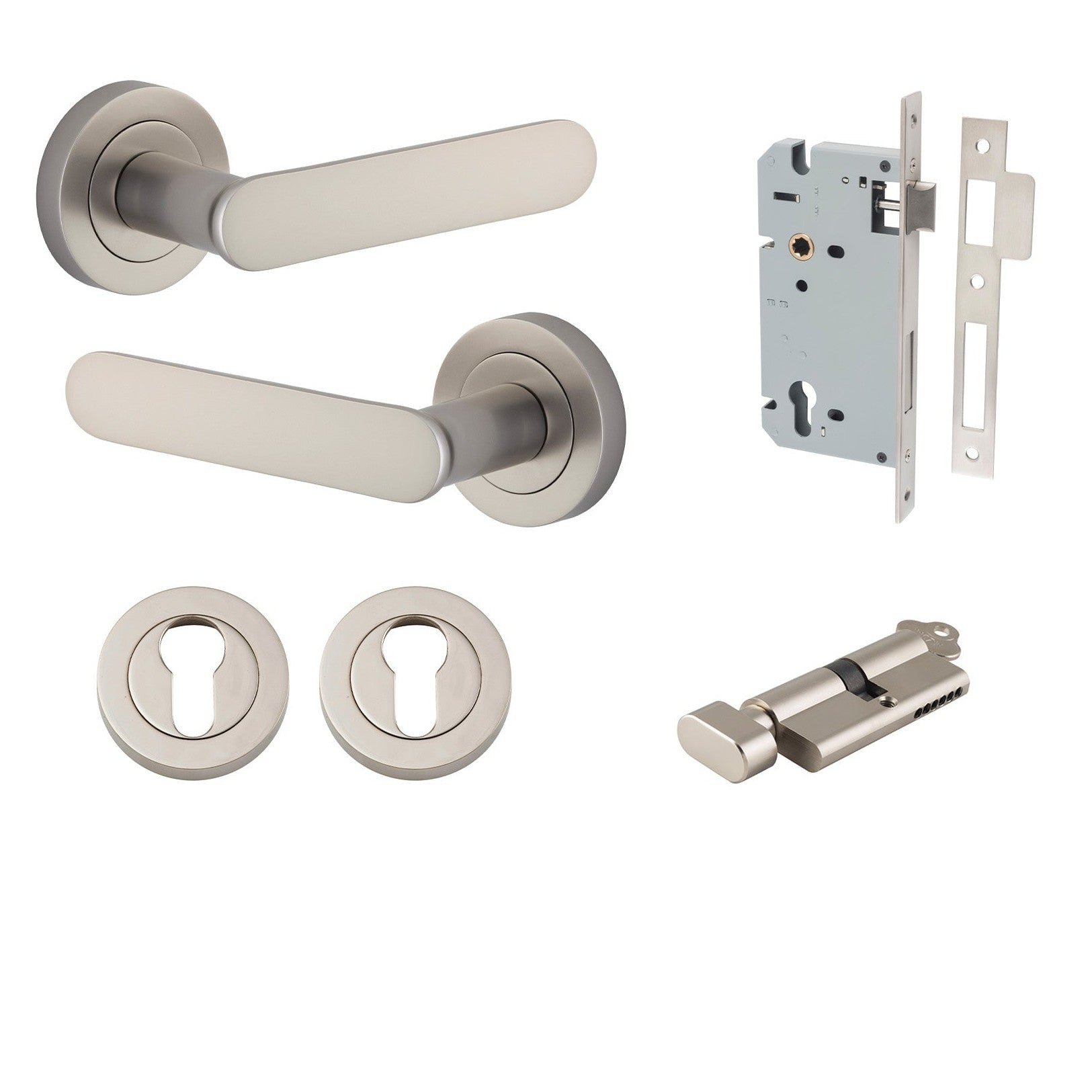 Iver Door Handle Bronte Rose Round Pair Key/Thumb Satin Nickel Entrance Kit