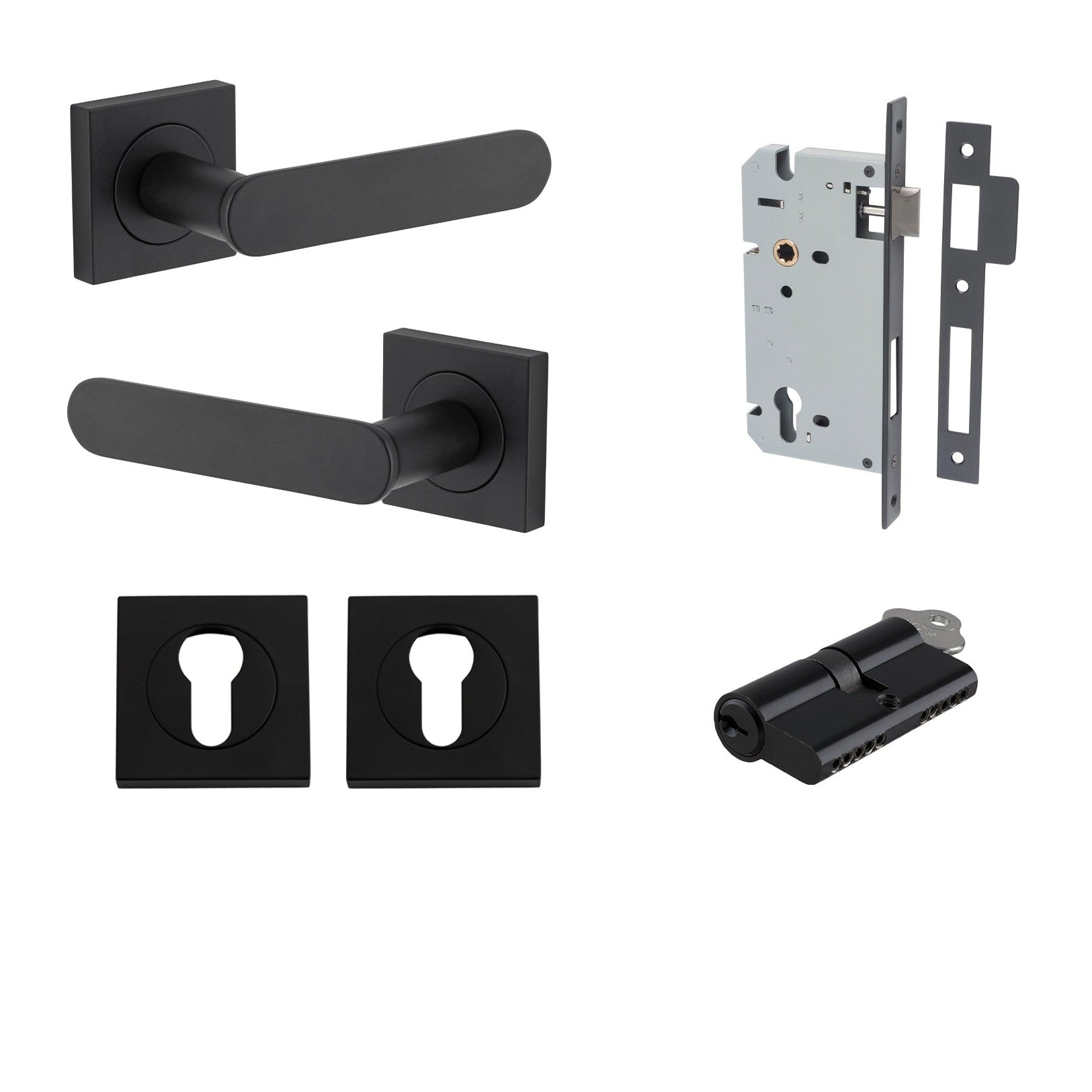 Iver Door Handle Bronte Rose Square Pair Key/Key Matt Black Entrance Kit
