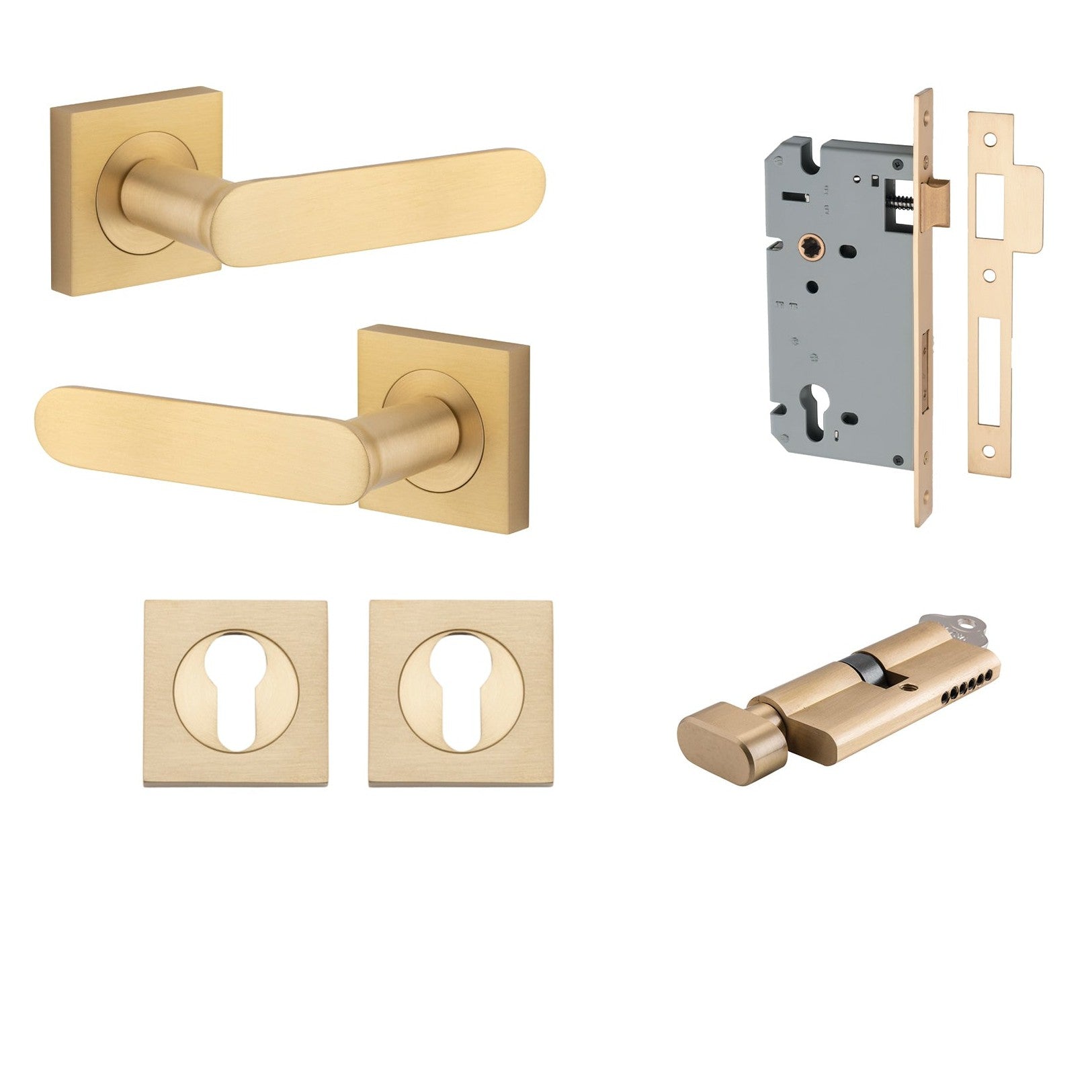 Iver Door Handle Bronte Rose Square Pair Key/Thumb Brushed Brass Entrance Kit