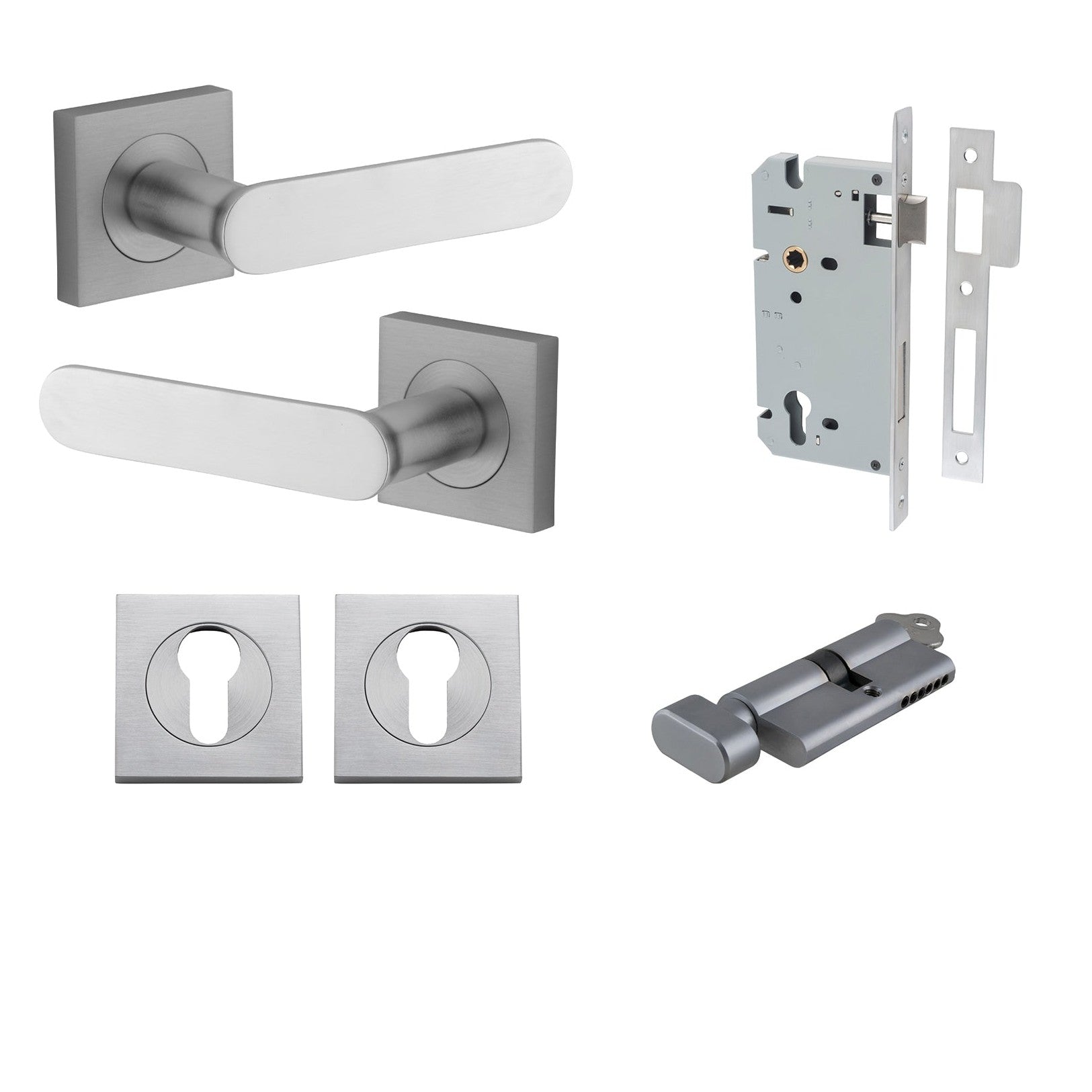 Iver Door Handle Bronte Rose Square Pair Key/Thumb Brushed Chrome Entrance Kit