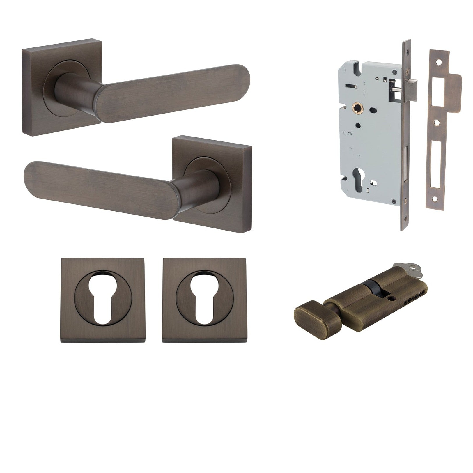 Iver Door Handle Bronte Rose Square Pair Key/Thumb Signature Brass Entrance Kit