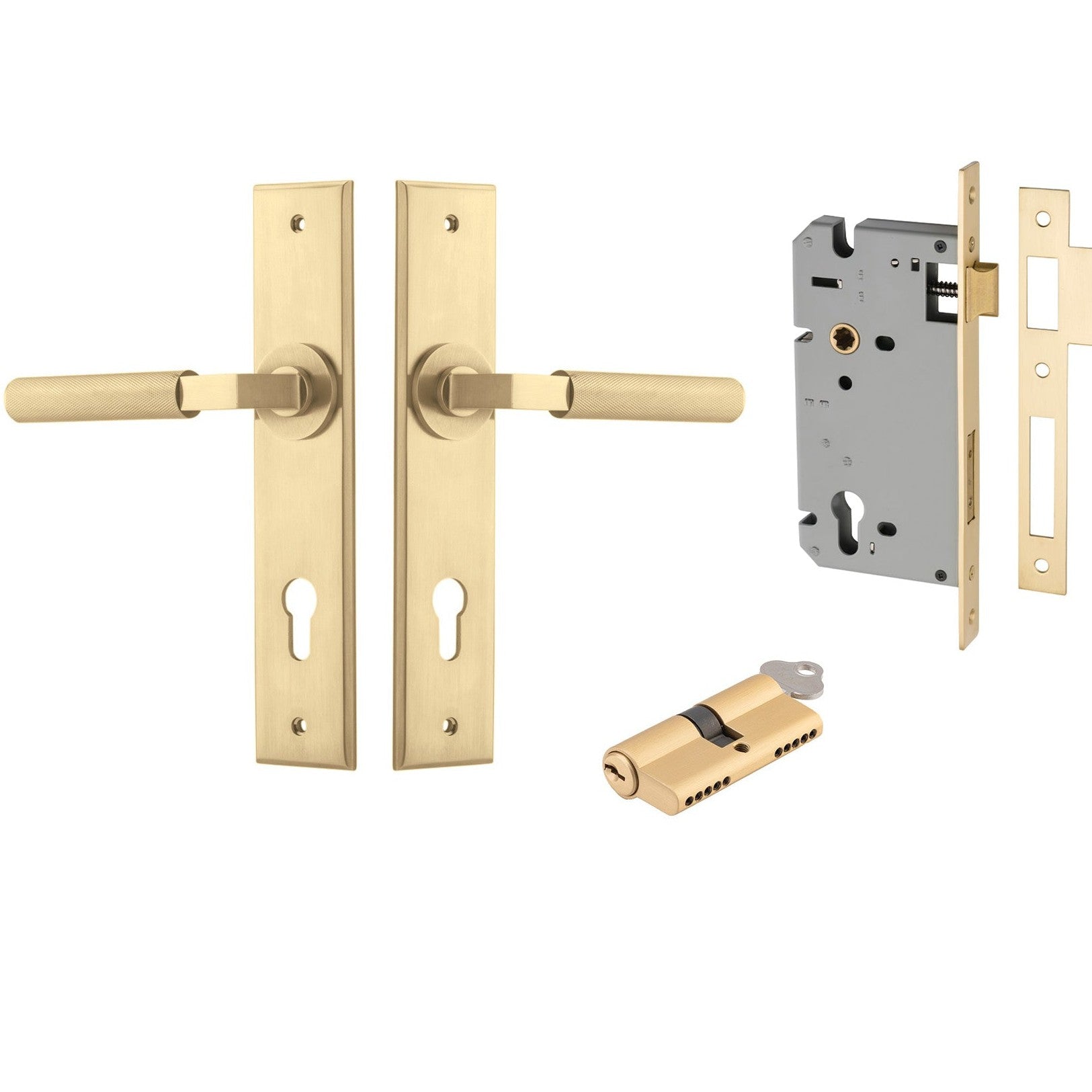 Iver Door Handle Brunswick Chamfered Euro Key/Key Brushed Gold PVD Entrance Kit