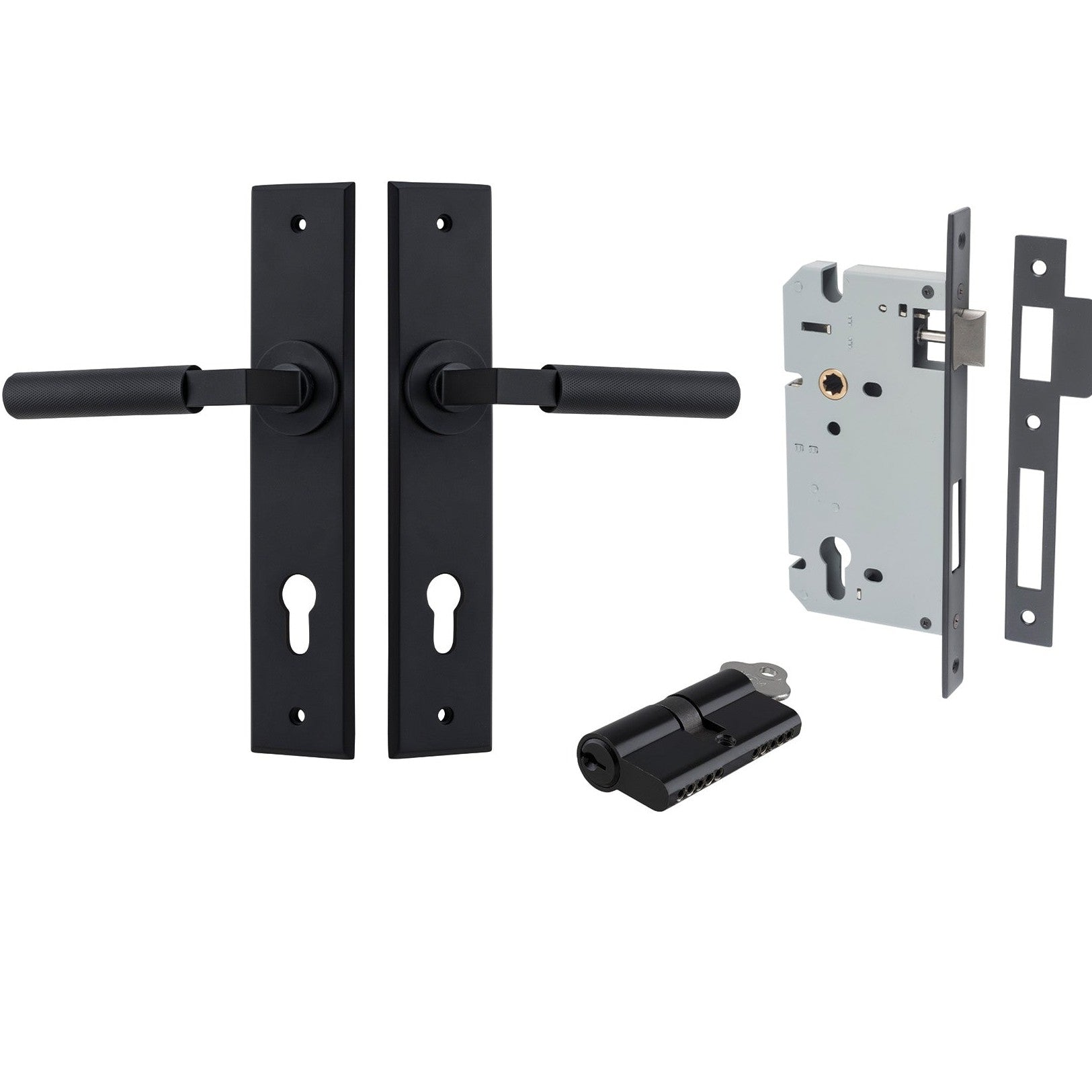 Iver Door Handle Brunswick Chamfered Key/Key Matt Black Entrance Kit