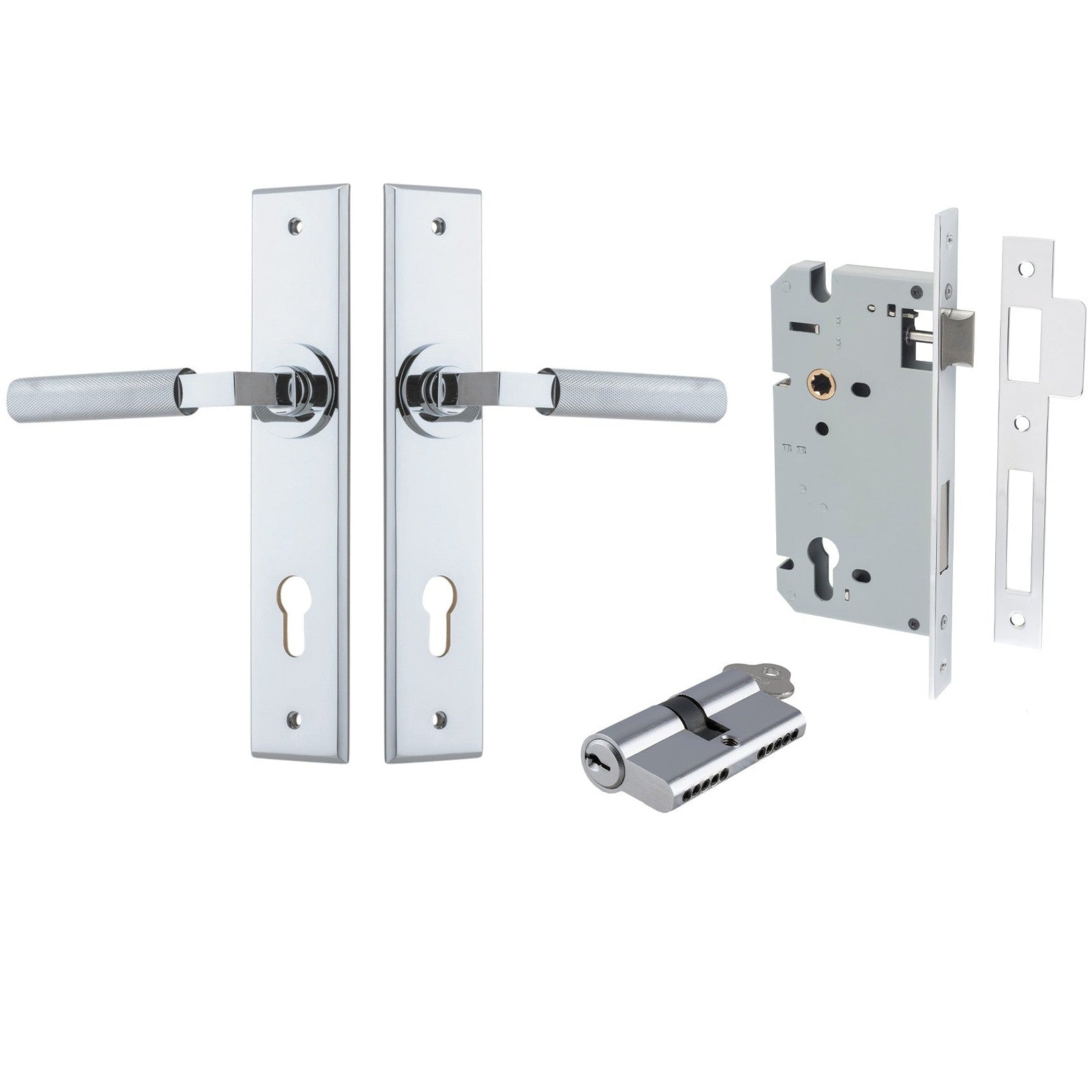 Iver Door Handle Brunswick Chamfered Key/Key Polished Chrome Entrance Kit