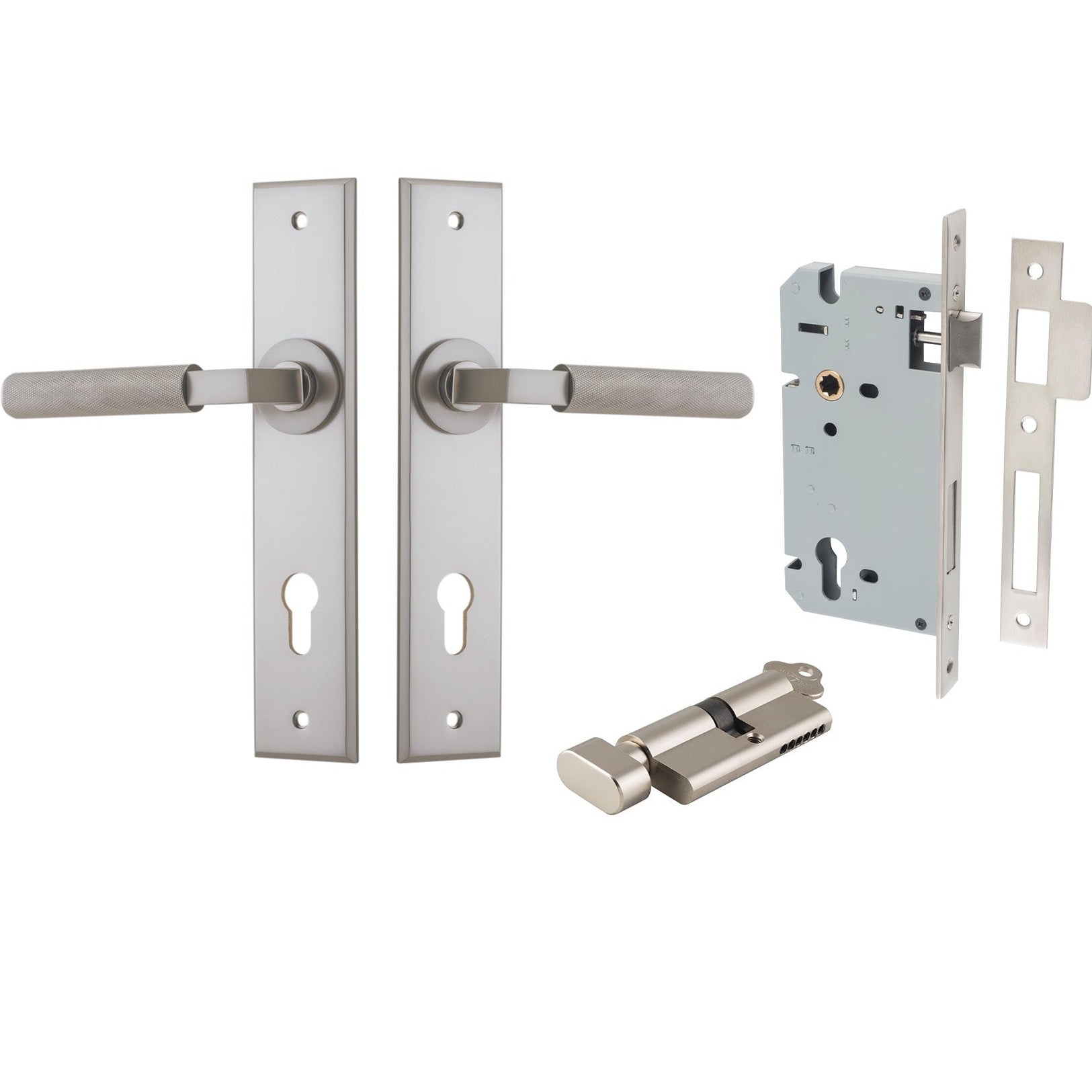 Iver Door Handle Brunswick Chamfered Key/Thumb Satin Nickel Entrance Kit