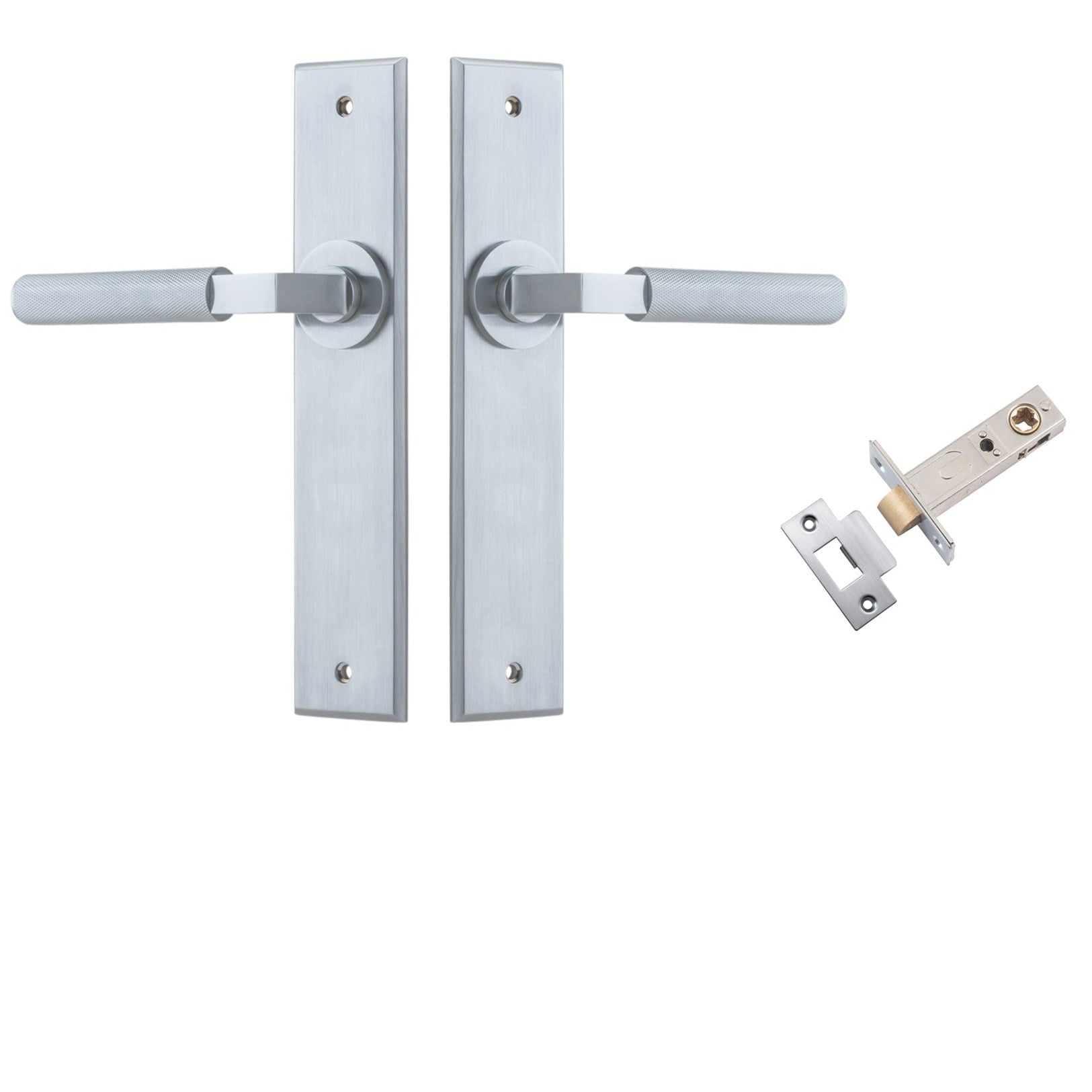 Iver Door Handle Brunswick Knurled Chamfered Brushed Chrome Passage Kit