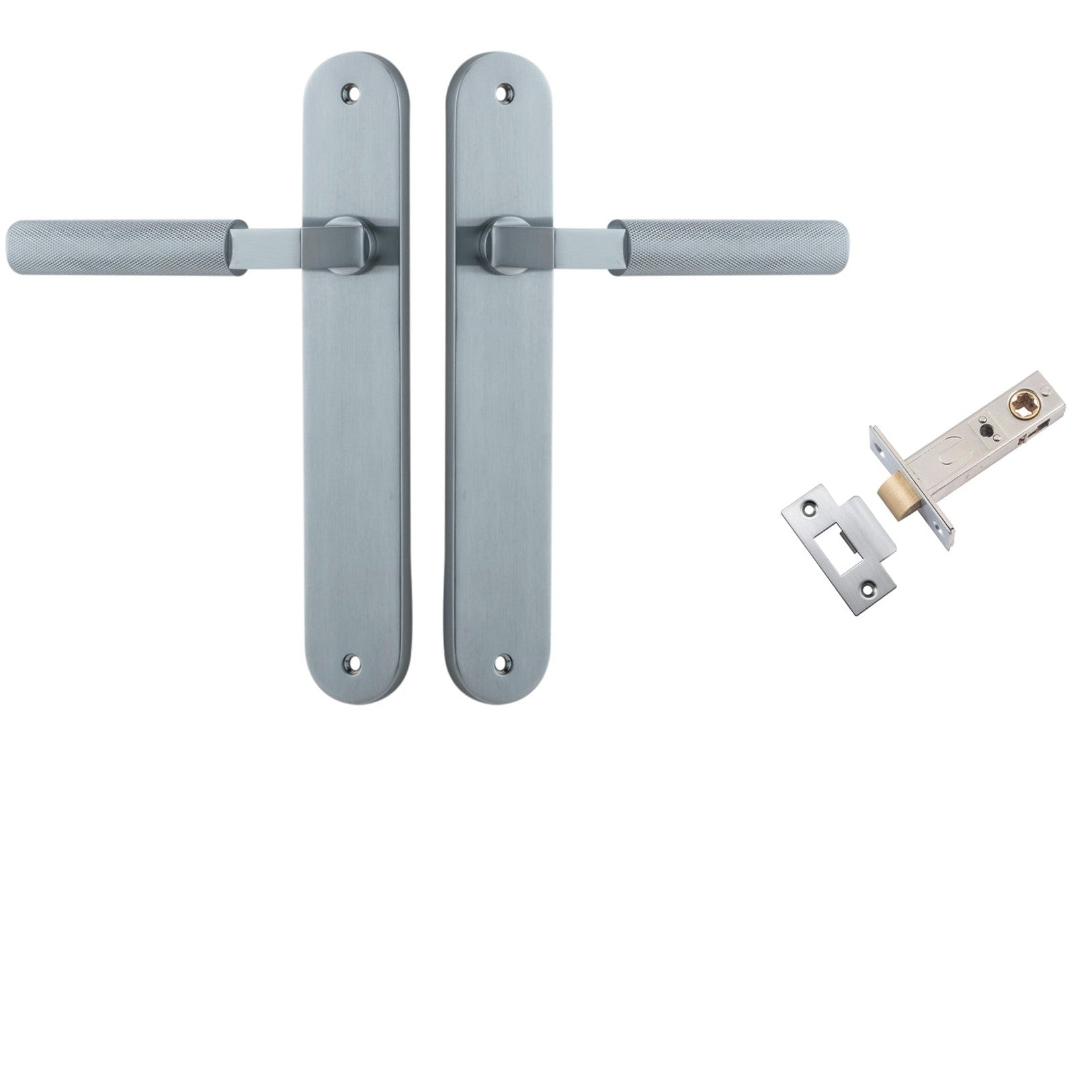 Iver Door Handle Brunswick Knurled Oval Brushed Chrome Passage Kit
