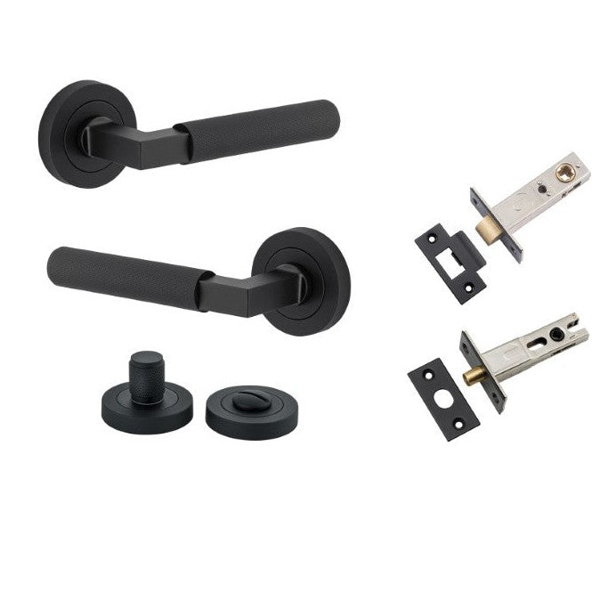 Iver Door Handle Brunswick Knurled Rose Round Matt Black Privacy Kit