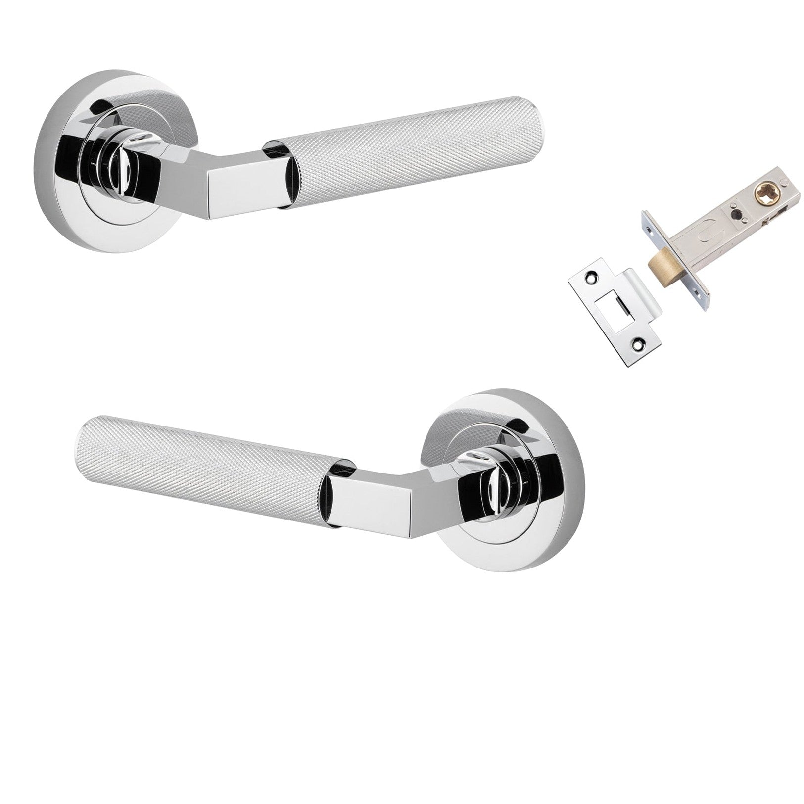 Iver Door Handle Brunswick Knurled Rose Round Polished Chrome Passage Kit