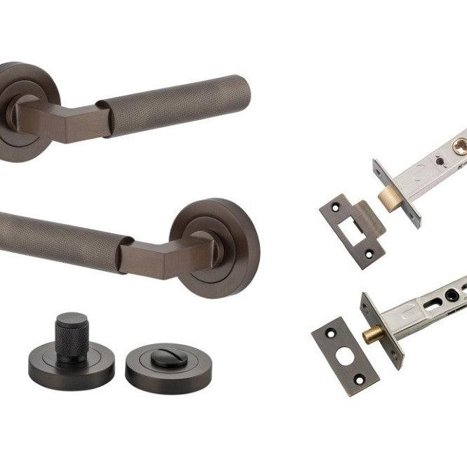 Iver Door Handle Brunswick Knurled Rose Round Signature Brass Privacy Kit