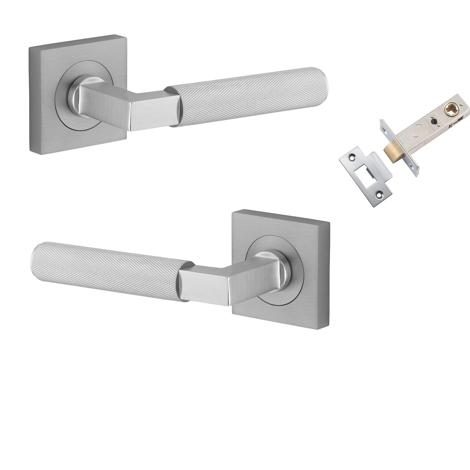 Iver Door Handle Brunswick Knurled Rose Square Brushed Chrome Passage Kit