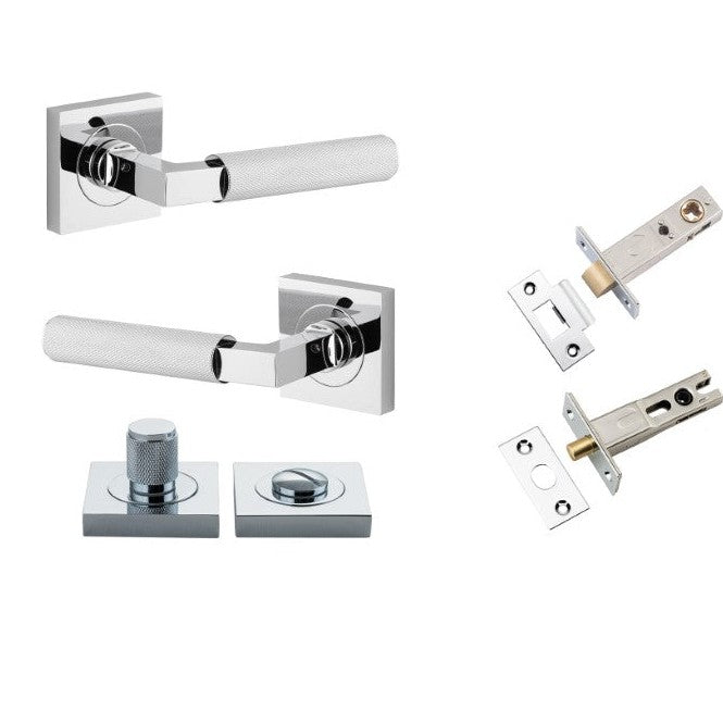 Iver Door Handle Brunswick Knurled Rose Square Polished Chrome Privacy Kit