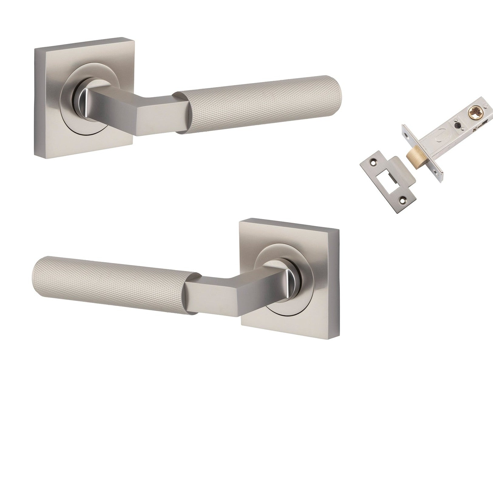Iver Door Handle Brunswick Knurled Rose Square Satin Nickel Passage Kit