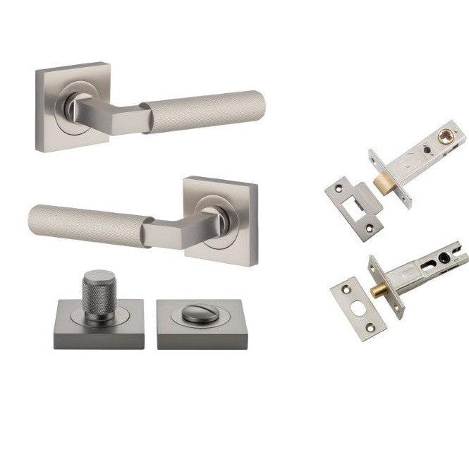 Iver Door Handle Brunswick Knurled Rose Square Satin Nickel Privacy Kit