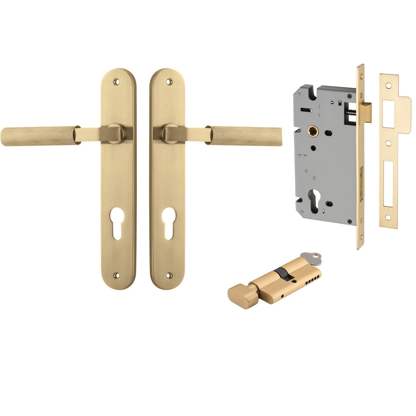 Iver Door Handle Brunswick Oval Euro Key/Thumb Brushed Gold PVD Entrance Kit