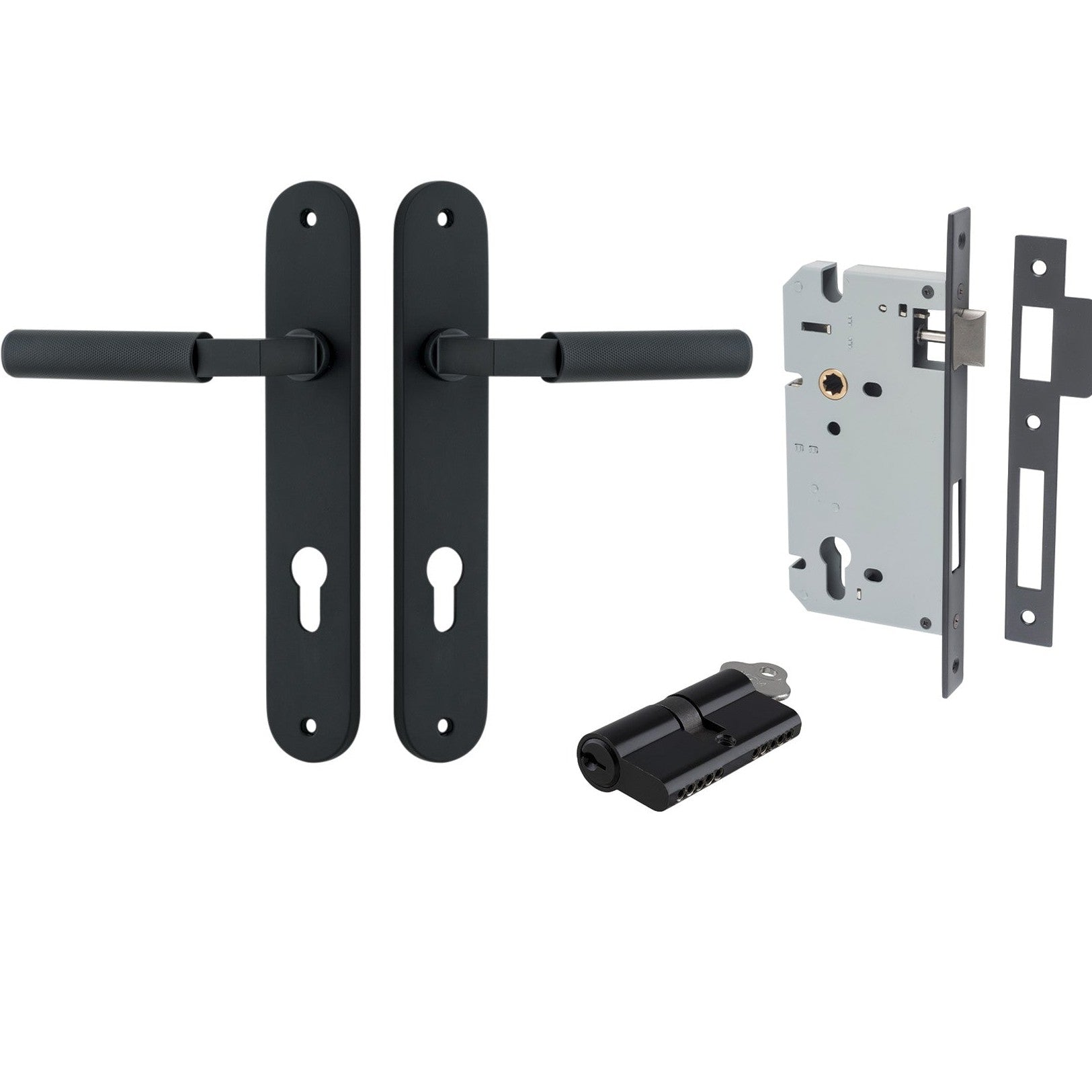 Iver Door Handle Brunswick Oval Euro Pair Key/Key Matt Black Entrance Kit