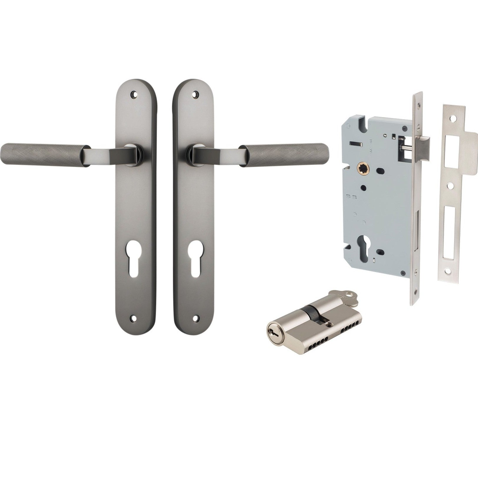 Iver Door Handle Brunswick Oval Euro Pair Key/Key Satin Nickel Entrance Kit