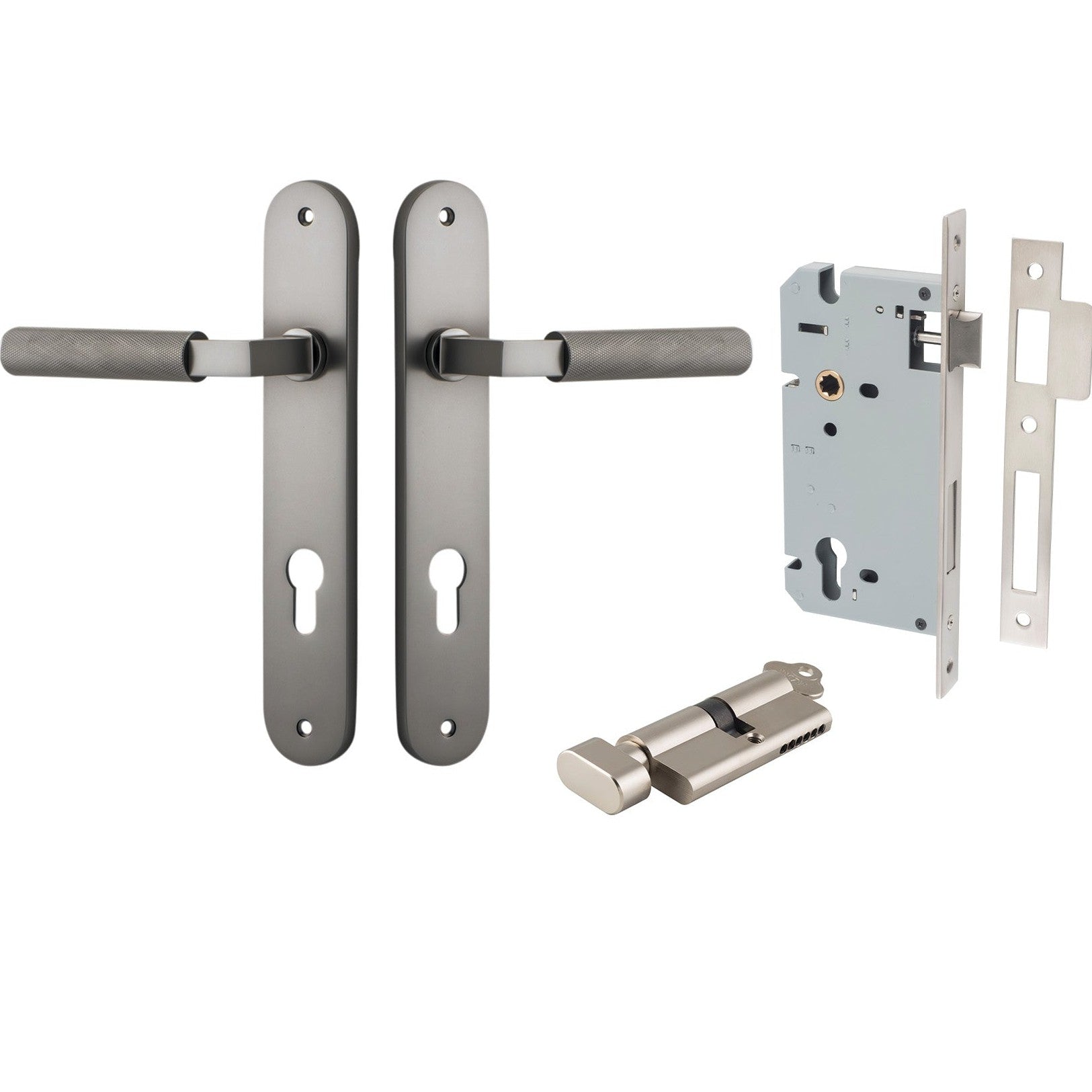 Iver Door Handle Brunswick Oval Euro Pair Key/Thumb Satin Nickel Entrance Kit