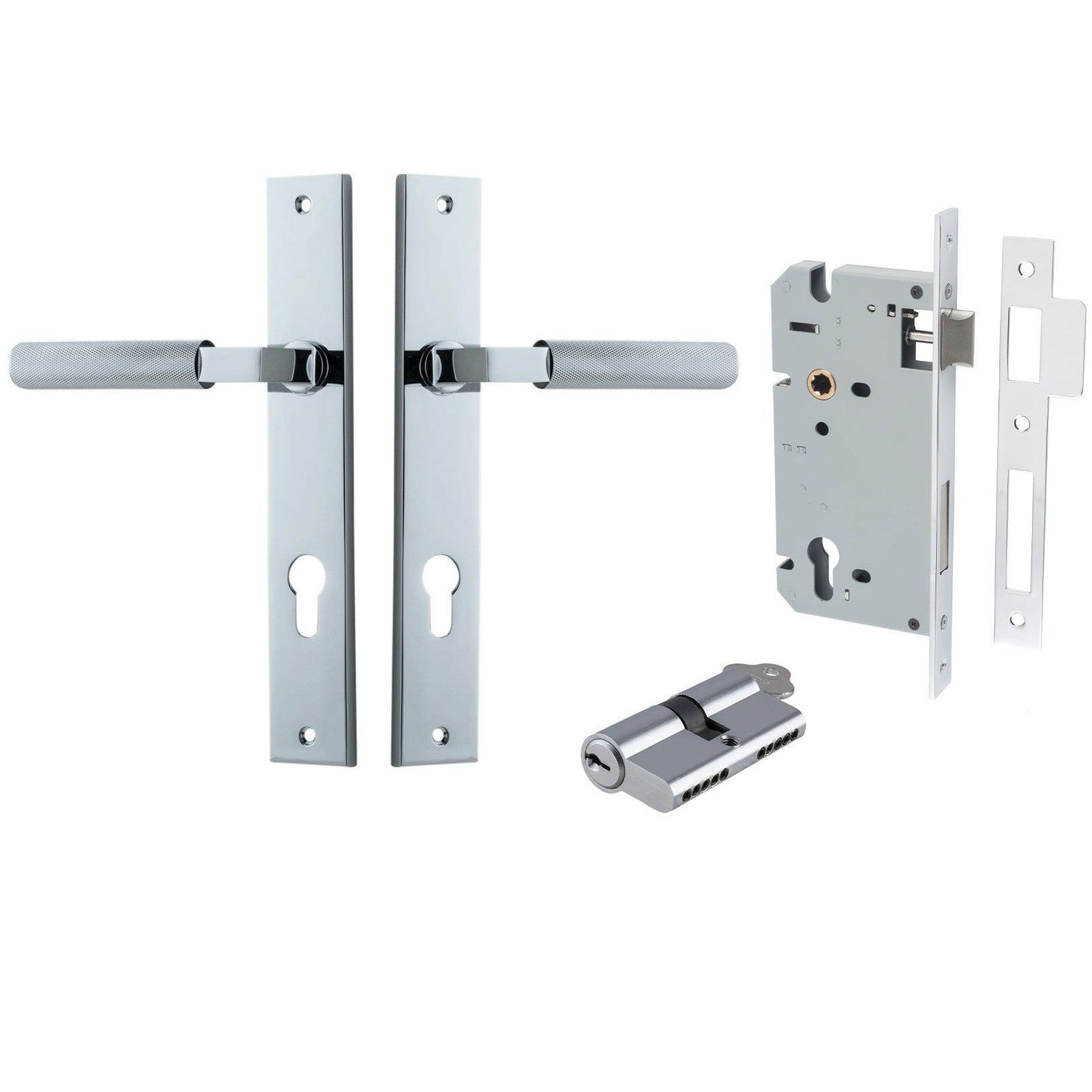 Iver Door Handle Brunswick Rectangular Euro Pair Key/Key Polished Chrome Entrance Kit