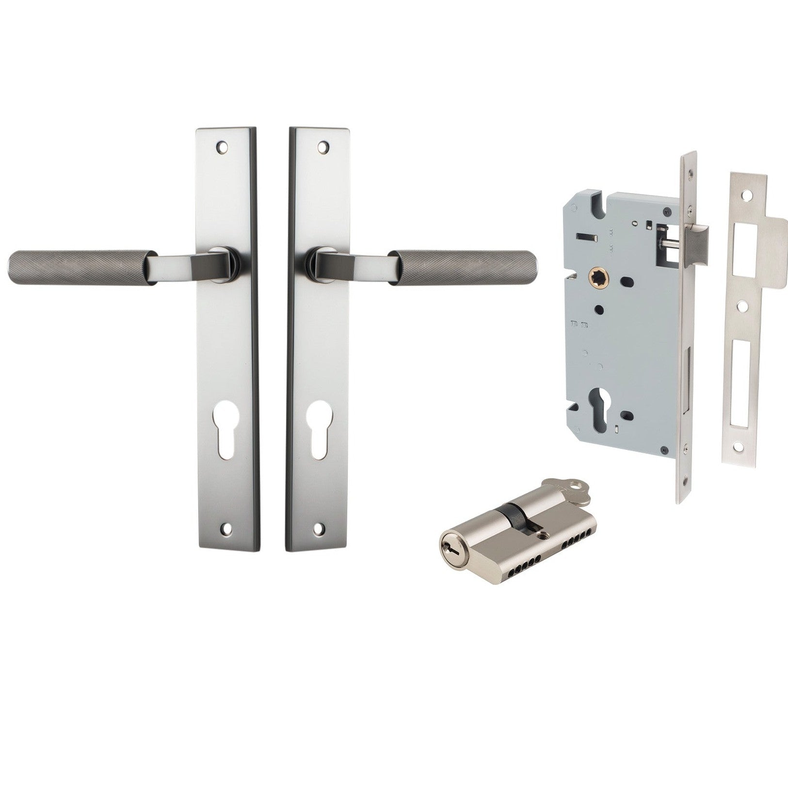 Iver Door Handle Brunswick Rectangular Euro Pair Key/Key Satin Nickel Entrance Kit