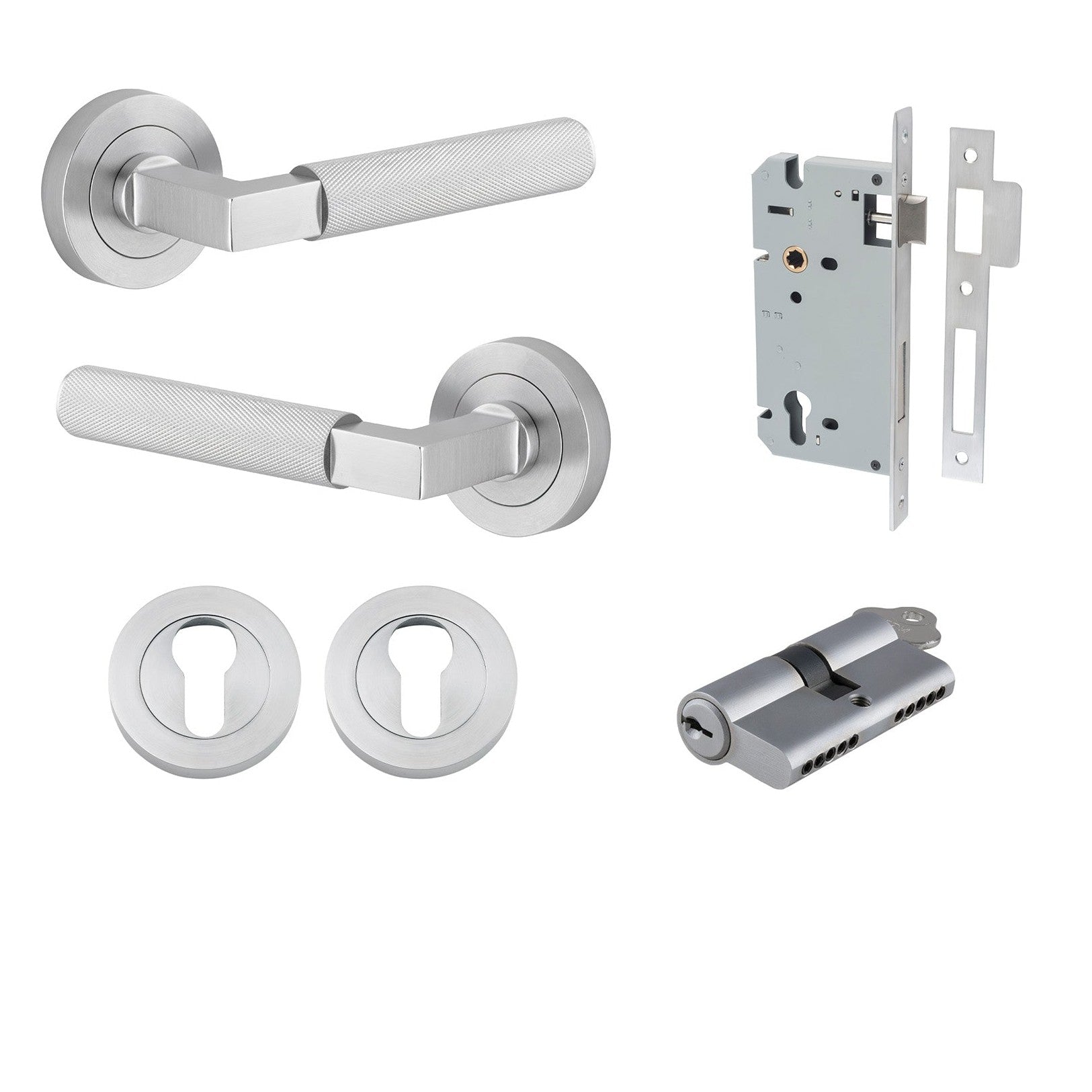 This product includes all components required to install on your door. Euro and privacy punch outs are 85mm CTC. Half sets are not available in Iver kits.