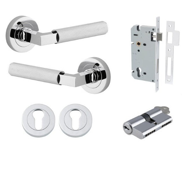 Iver Door Handle Brunswick Rose Round Pair Key/Key Polished Chrome Entrance Kit