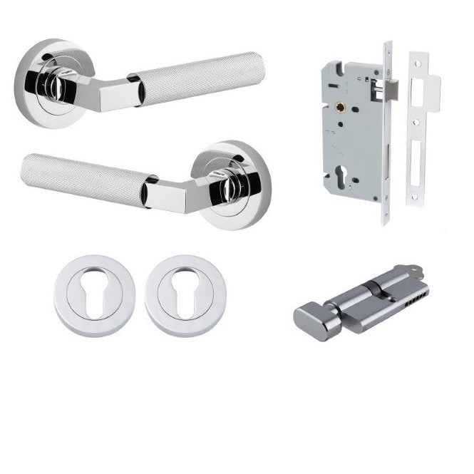 Iver Door Handle Brunswick Rose Round Pair Key/Thumb Polished Chrome Entrance Kit