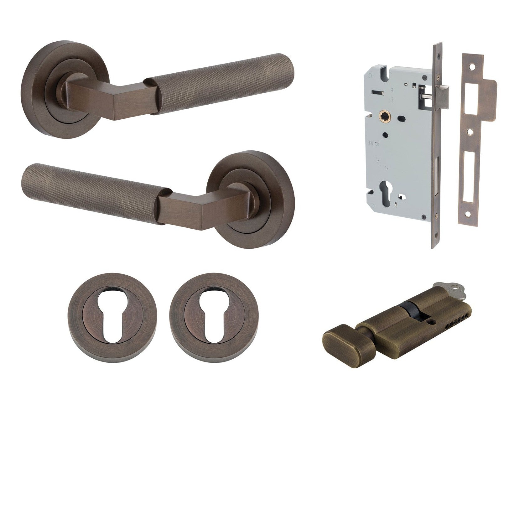 Iver Door Handle Brunswick Rose Round Pair Key/Thumb Signature Brass Entrance Kit
